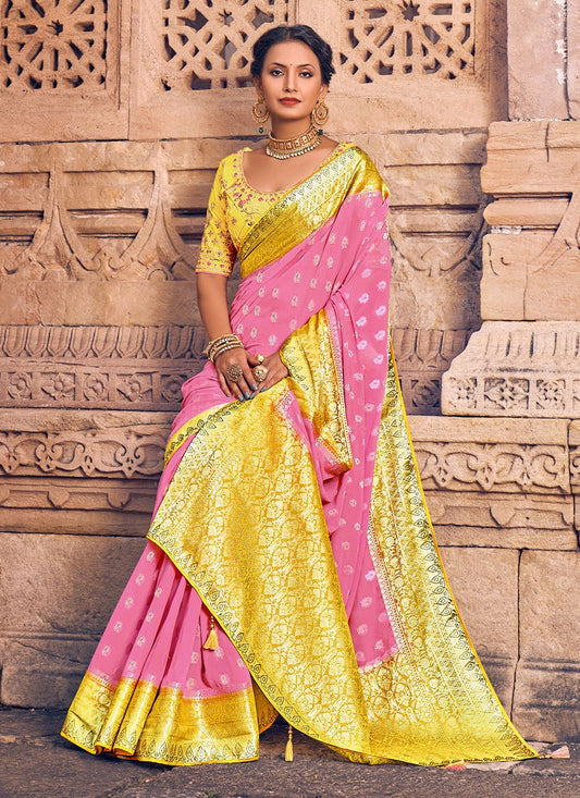 Classic Georgette Pink Embroidered Saree