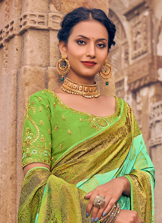Classic Georgette Green Embroidered Saree
