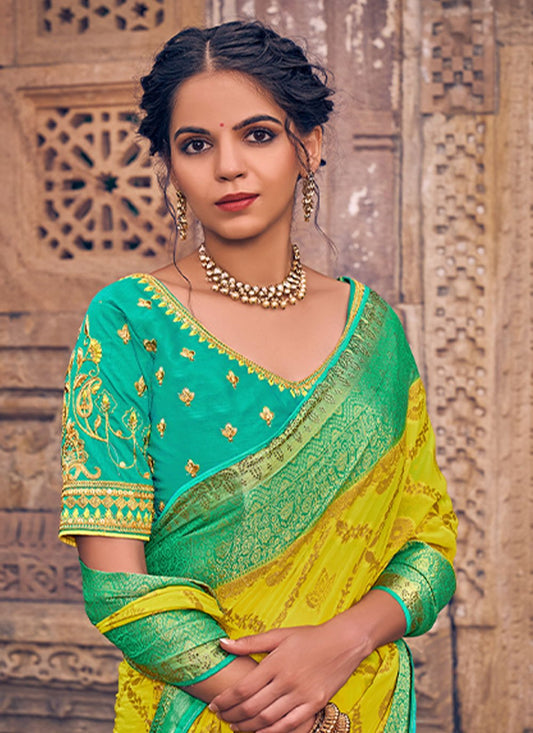 Classic Georgette Yellow Embroidered Saree
