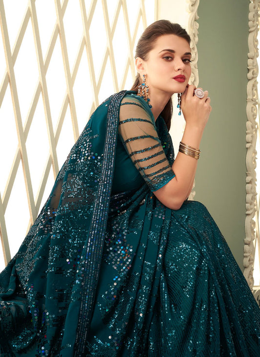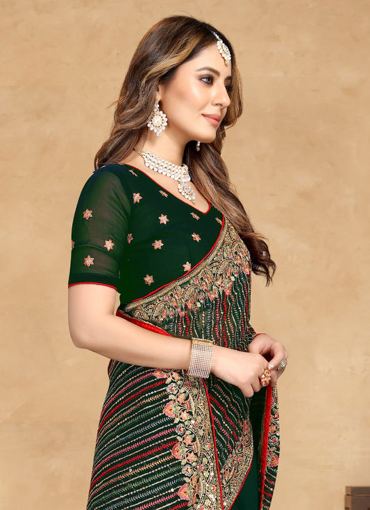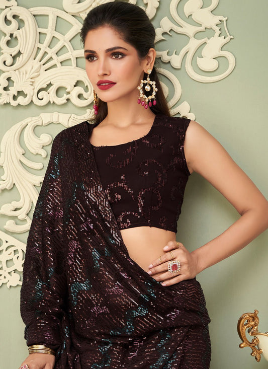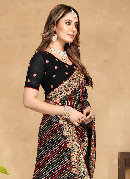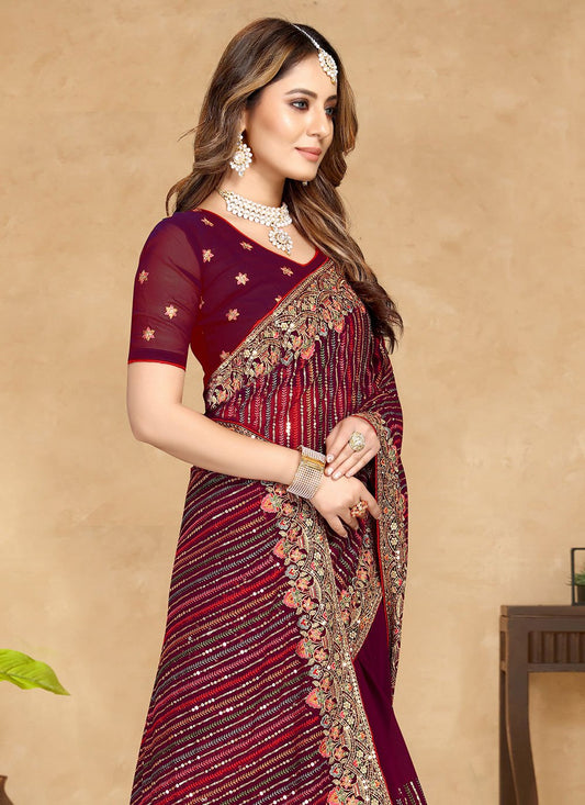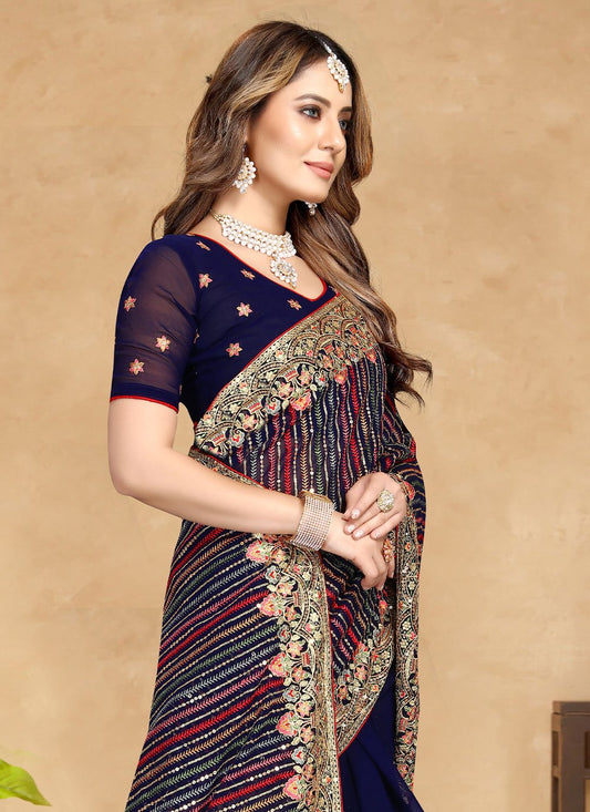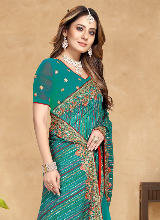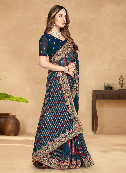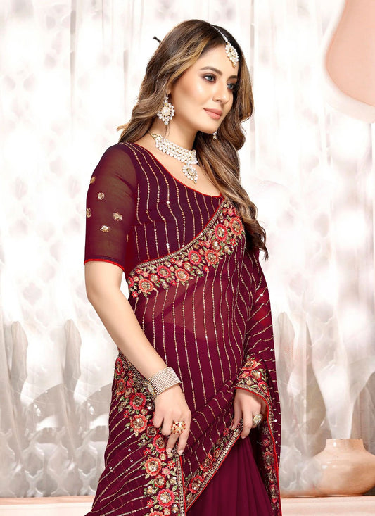 Traditional Saree Georgette Morpeach Embroidered Saree