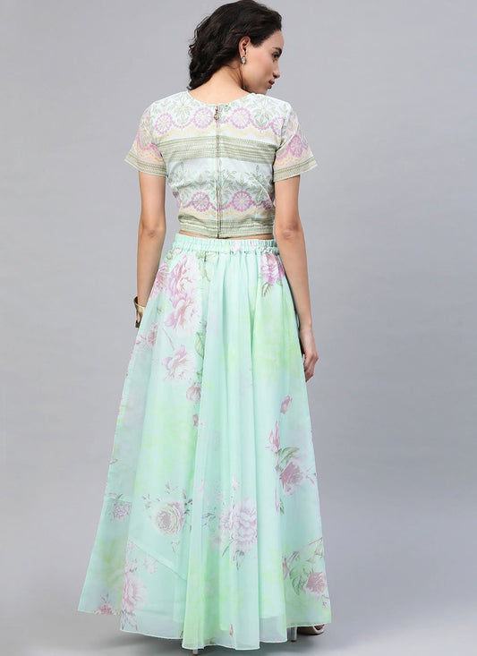 A Line Lehenga Organza Green Digital