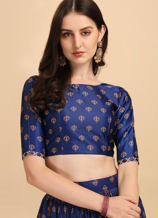 Lehenga Choli Satin Blue Digital Print