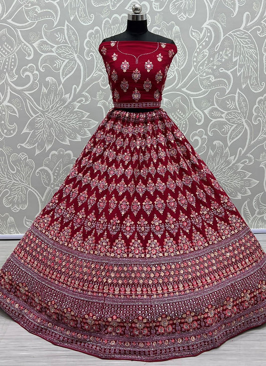 Lehenga Choli Georgette Red Diamond Lehenga