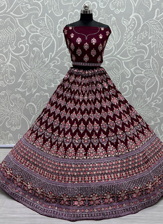 Lehenga Choli Georgette Wine Diamond Lehenga