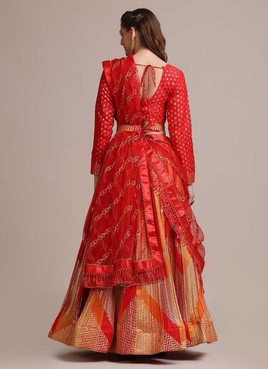 Lehenga Choli Tafeta Silk Mustard Embroidered