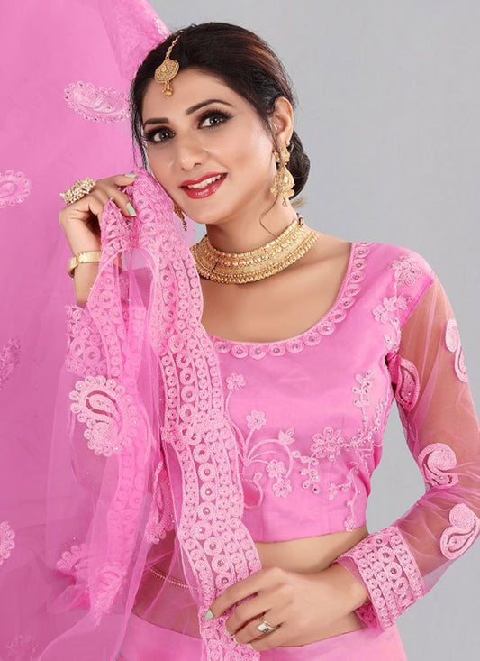 Lehenga Choli Satin Pink Embroidered Lehenga