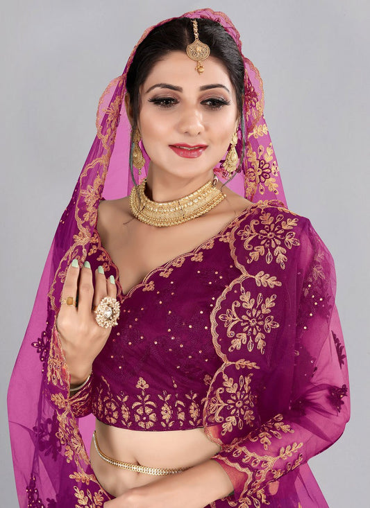 Lehenga Choli Net Maroon Embroidered Lehenga