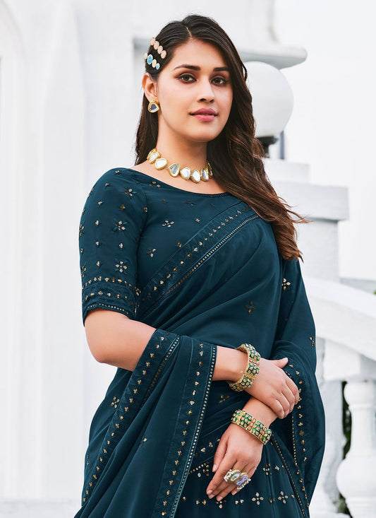 Lehenga Choli Georgette Viscose Teal Embroidered