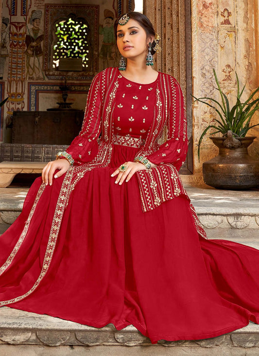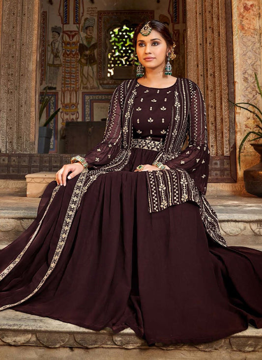 Salwar Suit Georgette Maroon Embroidered Salwar