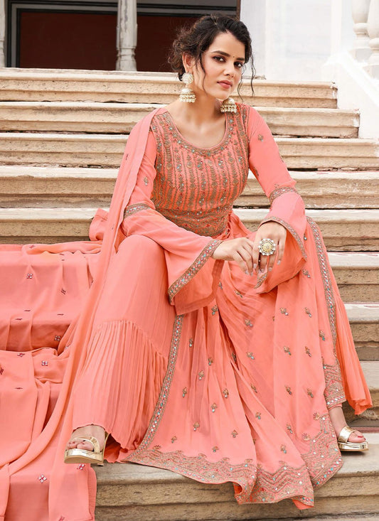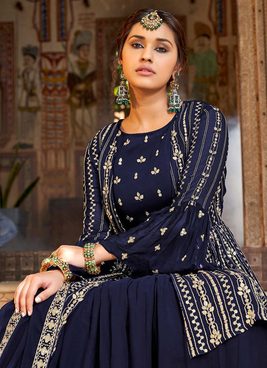 Palazzo Salwar Suit Georgette Blue Embroidered