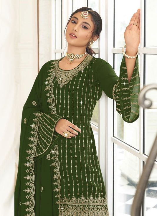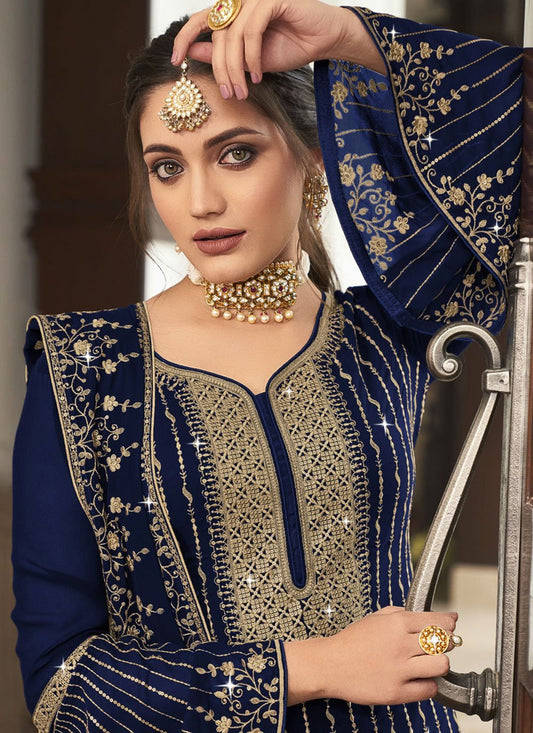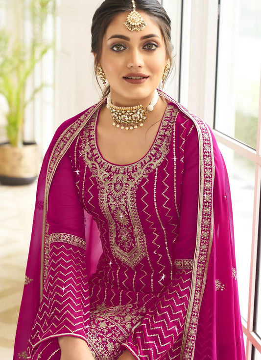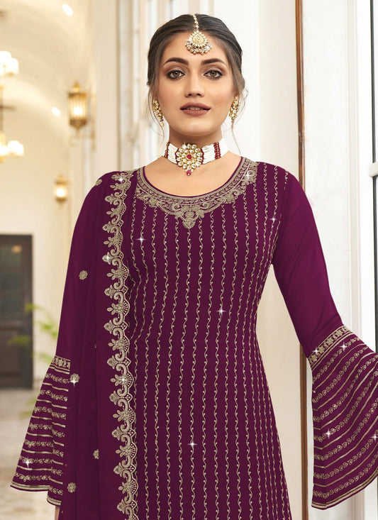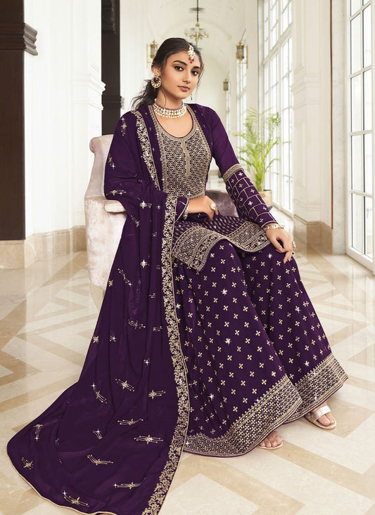 Palazzo Salwar Suit Georgette Purple Embroidered
