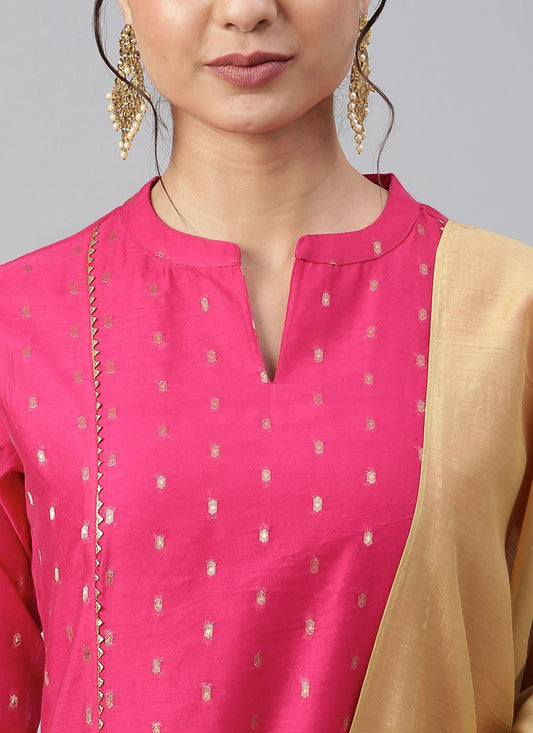 Readymade Style Chanderi Silk Fuchsia Woven