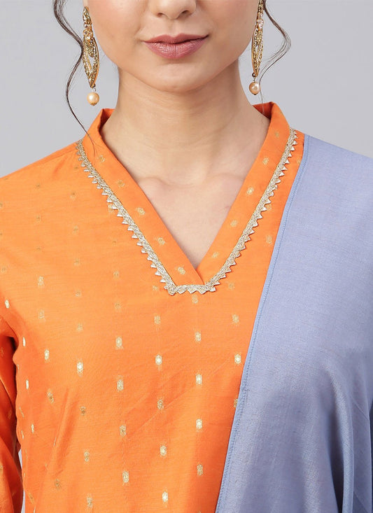 Palazzo Salwar Suit Chanderi Silk Orange