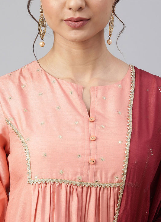 Salwar Suit Poly Silk Peach Sequins