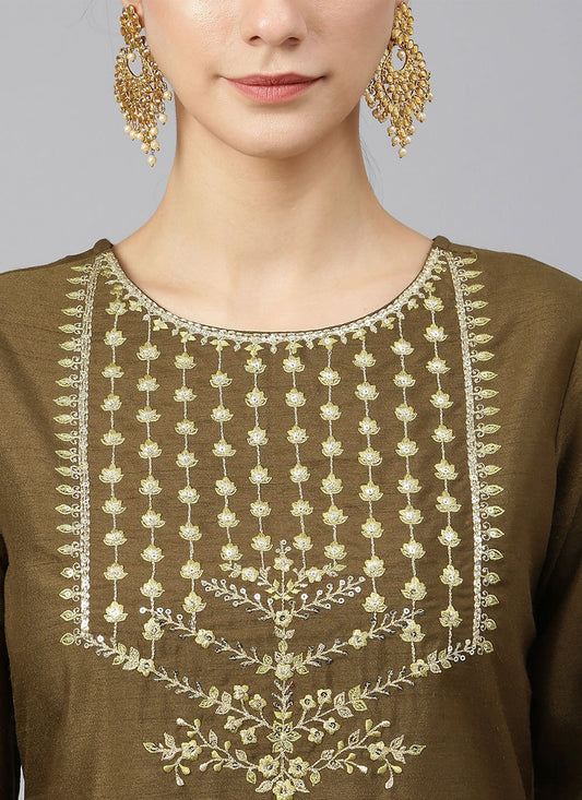 Salwar Suit Silk Green Embroidered Salwar
