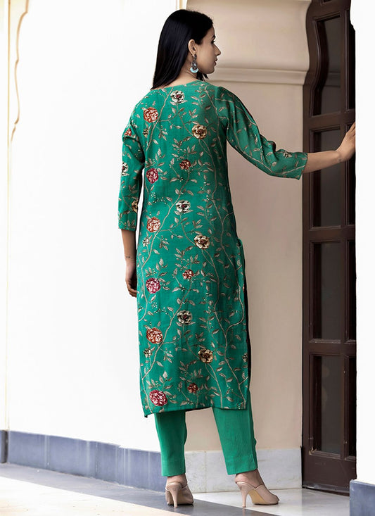Salwar Suit Silk Sea Green Print