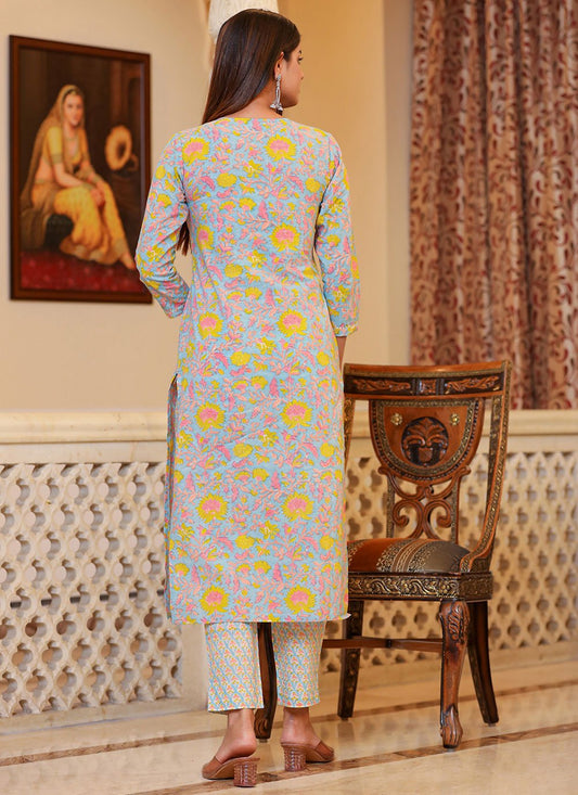Salwar Suit Cotton Blue Print Salwar