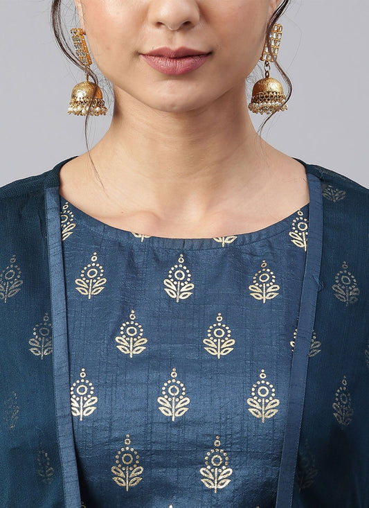 Salwar Suit Poly Silk Blue Foil