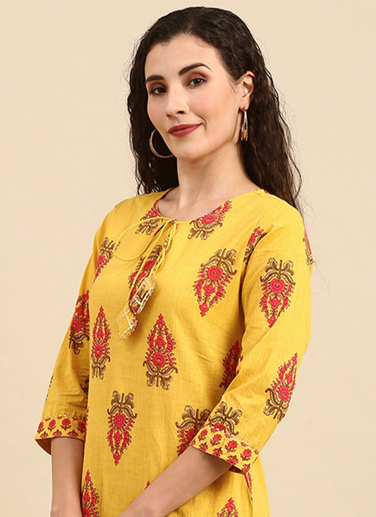 Salwar Suit Cotton Yellow Print Salwar