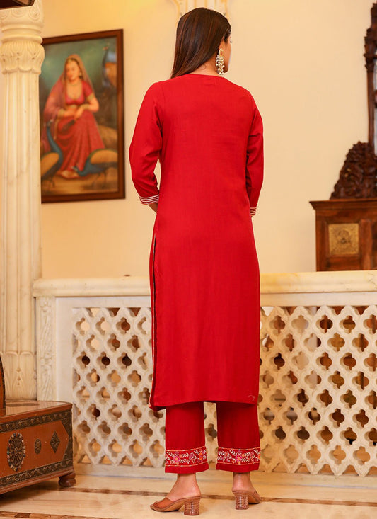 Salwar Suit Rayon Red Embroidered Salwar