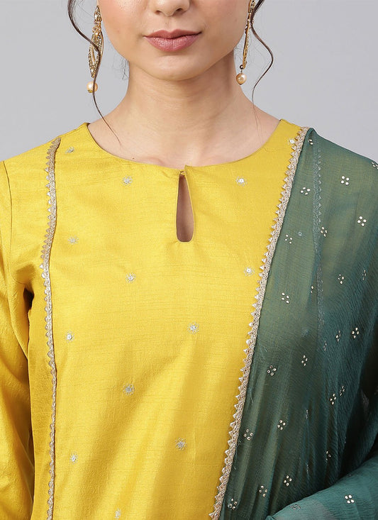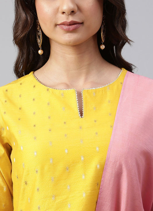 Salwar Suit Chanderi Silk Yellow Woven