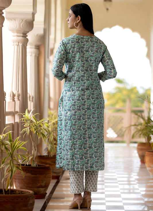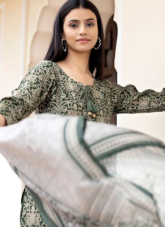 Salwar Suit Silk Green Print Salwar