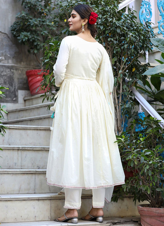 Salwar Suit Cotton Off White Embroidered