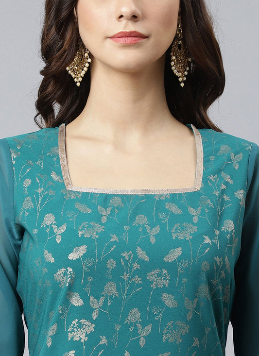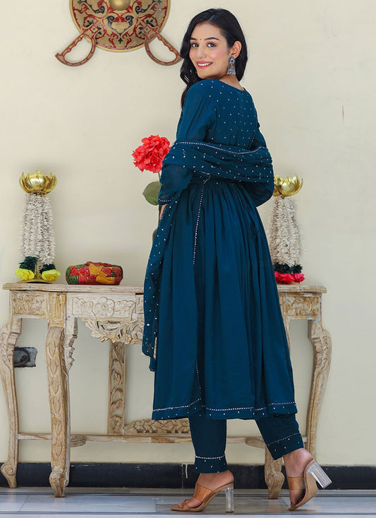 Salwar Suit Georgette Teal Mirror Salwar