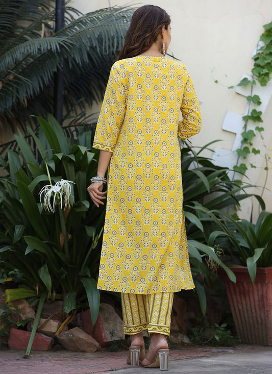 Straight Salwar Suit Cotton Yellow Floral