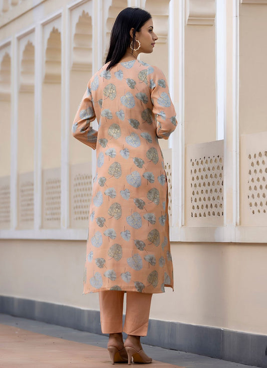Readymade Style Silk Peach Embroidered Salwar