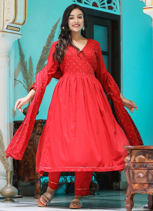Anarkali Suit Cotton Red Embroidered Salwar