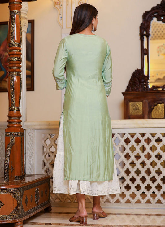 Straight Salwar Suit Silk Sea Green