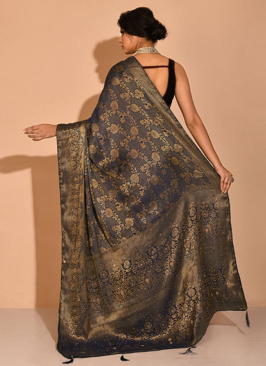 Traditional Saree Kanchipuram Silk Black Embroidered