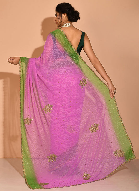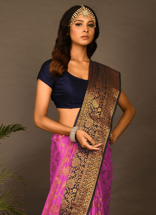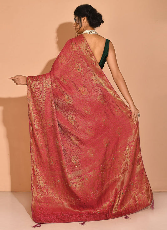 Designer Kanchipuram Silk Pink Embroidered Saree