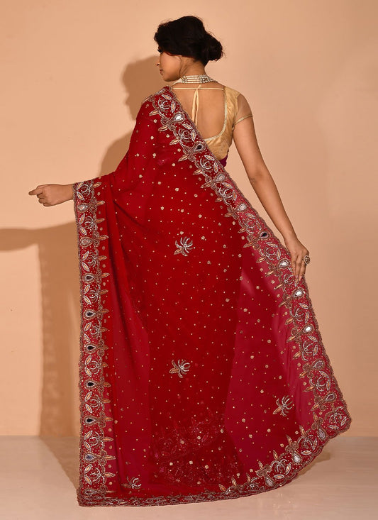 Traditional Saree Kanchipuram Silk Red Embroidered