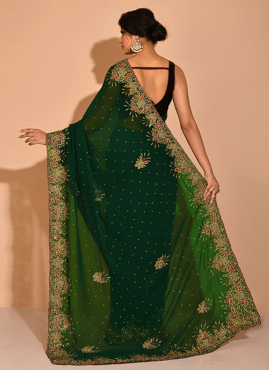 Contemporary Kanchipuram Silk Green Embroidered Saree
