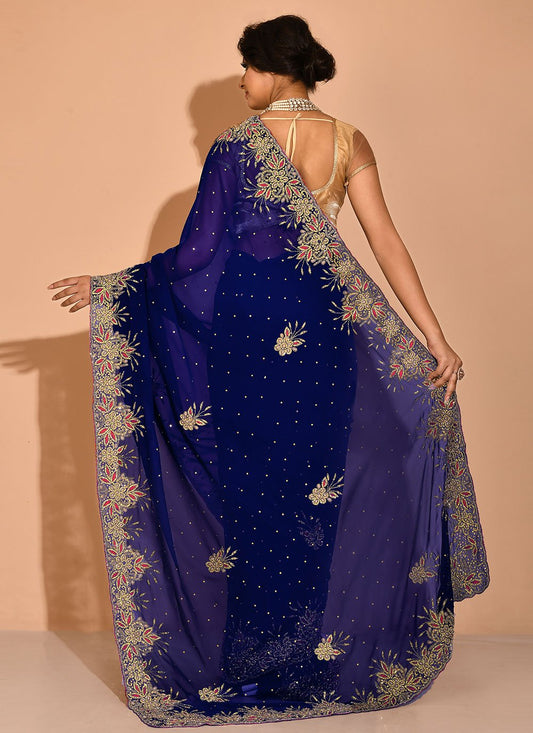 Silk Saree Kanchipuram Silk Blue Embroidered