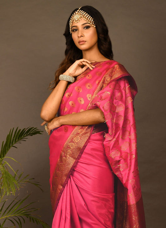 Silk Saree Rangoli Pink Zari Saree