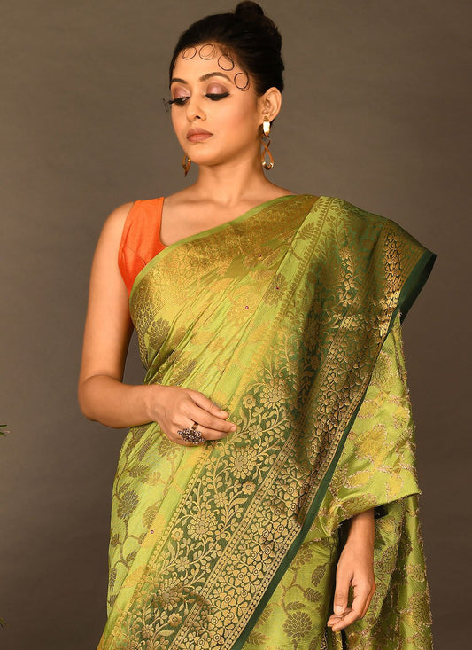 Contemporary Brasso Green Weaving Saree