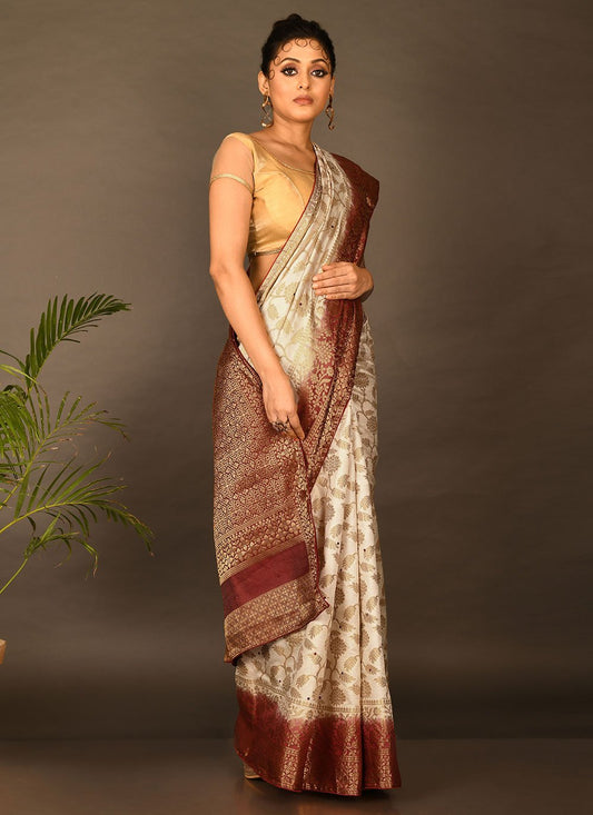 Traditional Saree Kanchipuram Silk Cream Embroidered