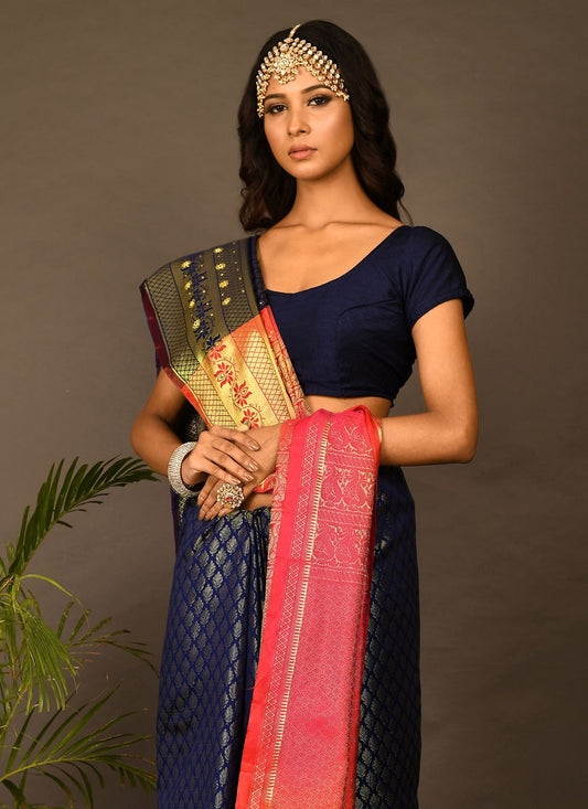 Contemporary Brasso Blue Weaving Saree