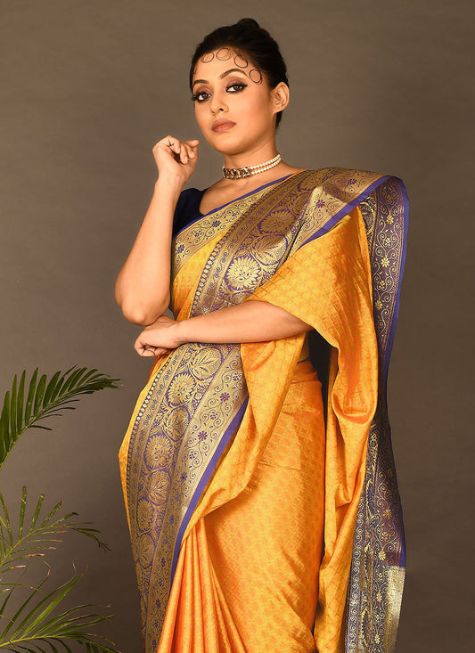 Silk Saree Kanchipuram Silk Mustard Embroidered