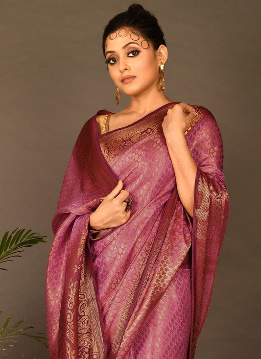 Designer Brasso Purple Weaving Saree