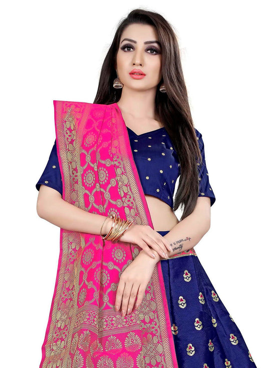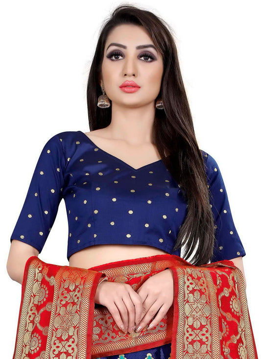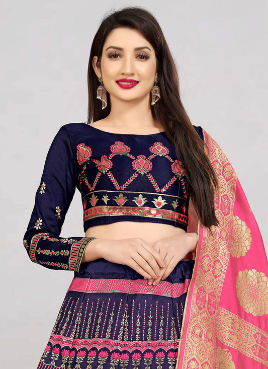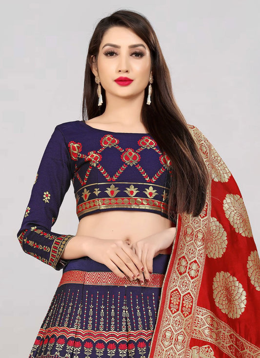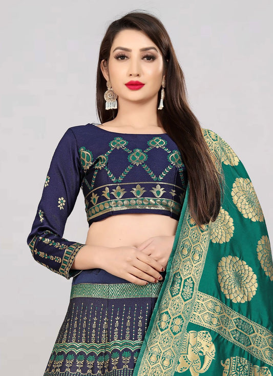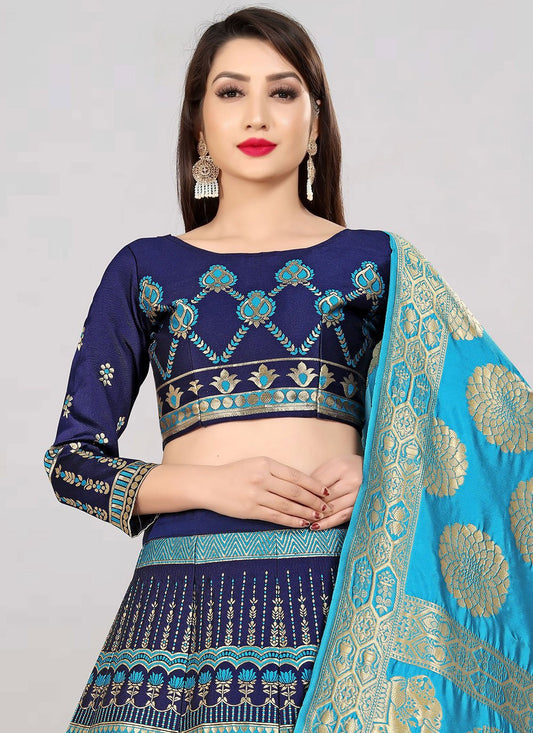 Lehenga Choli Banarasi Silk Blue Jacquard