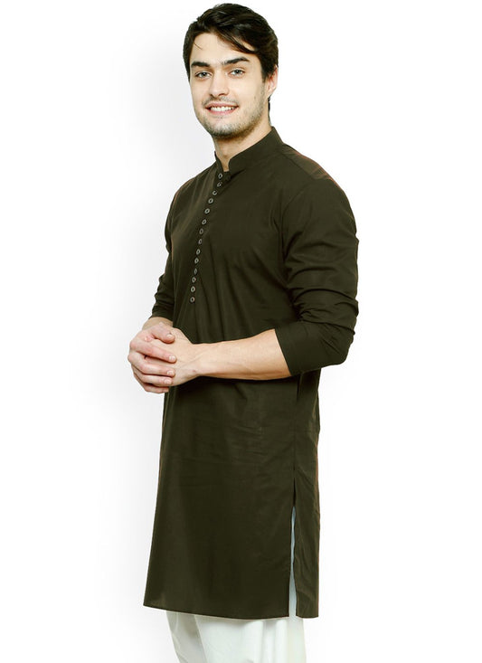 Kurta Pyjama Blended Cotton Maroon Buttons