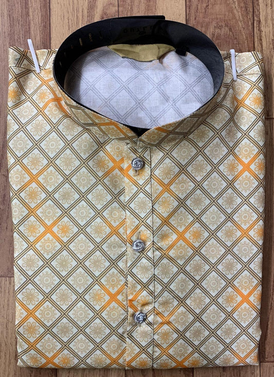 Kurta Pyjama Silk Yellow Embroidered Mens