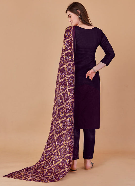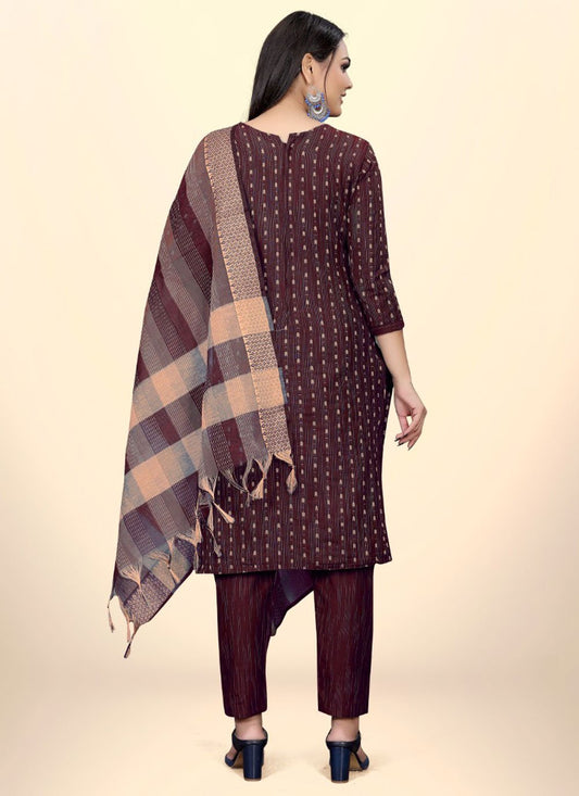 Salwar Suit Chanderi Cotton Maroon Embroidered