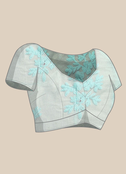 Trendy Saree Net Aqua Blue Embroidered