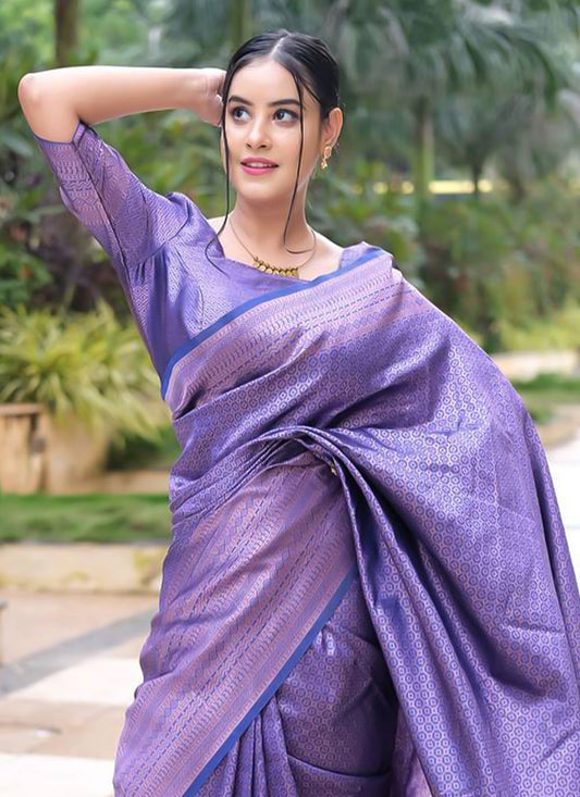 Trendy Saree Banarasi Silk Purple Weaving
