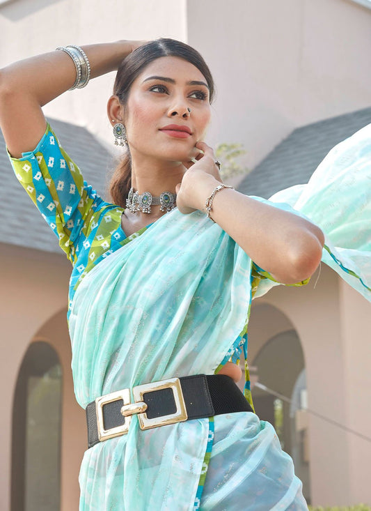 Casual Silk Blue Foil Print Saree